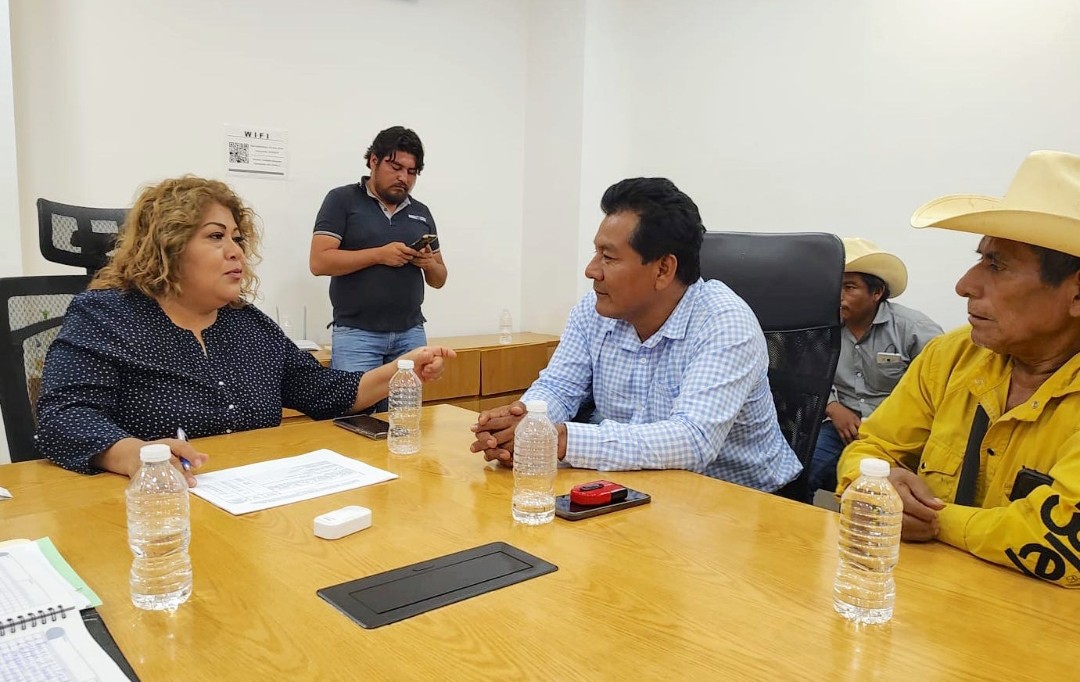 La secretaria de Desarrollo Urbano, Obras Públicas y Ordenamiento Territorial, Irene Jiménez Montiel, se reunió con el presidente municipal de Cochoapa El Grande, Bernardo Ponce García, comisarios y representantes de comunidades y ejidales