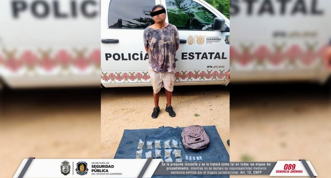 En acciones de seguridad y prevención del delito, personal de la Policía Estatal detuvo a una persona en posesión de presunta droga en el municipio de Acapulco.