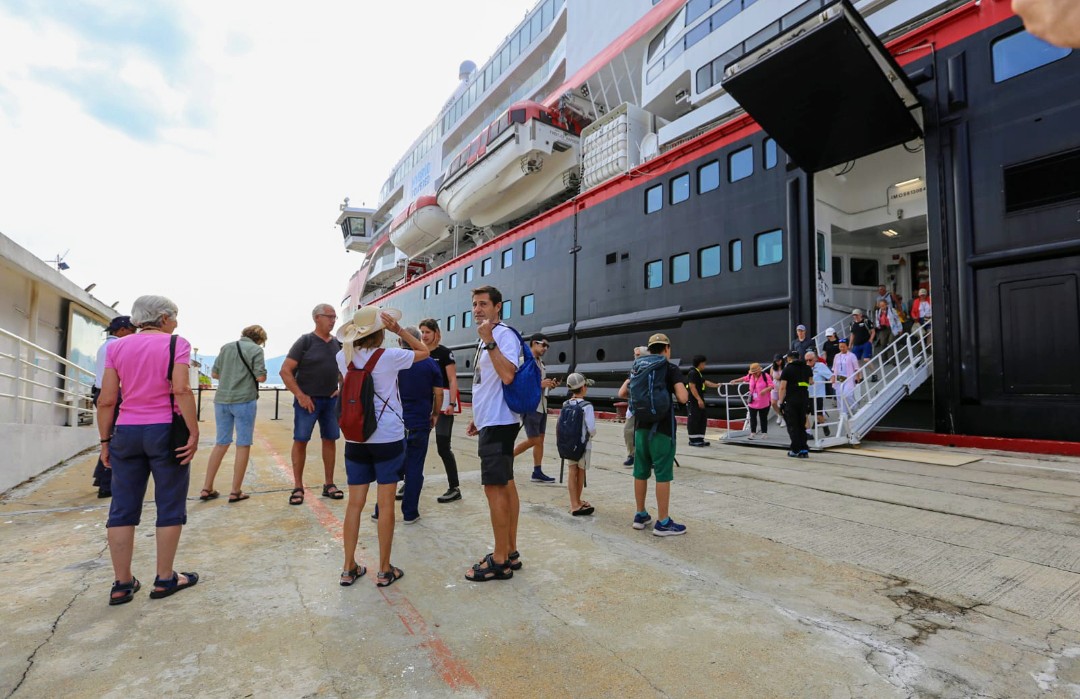 Los turistas fueron recibidos con una cálida bienvenida e invitados a disfrutar de la cultura, sabor y lugares espectaculares que ofrece el puerto.