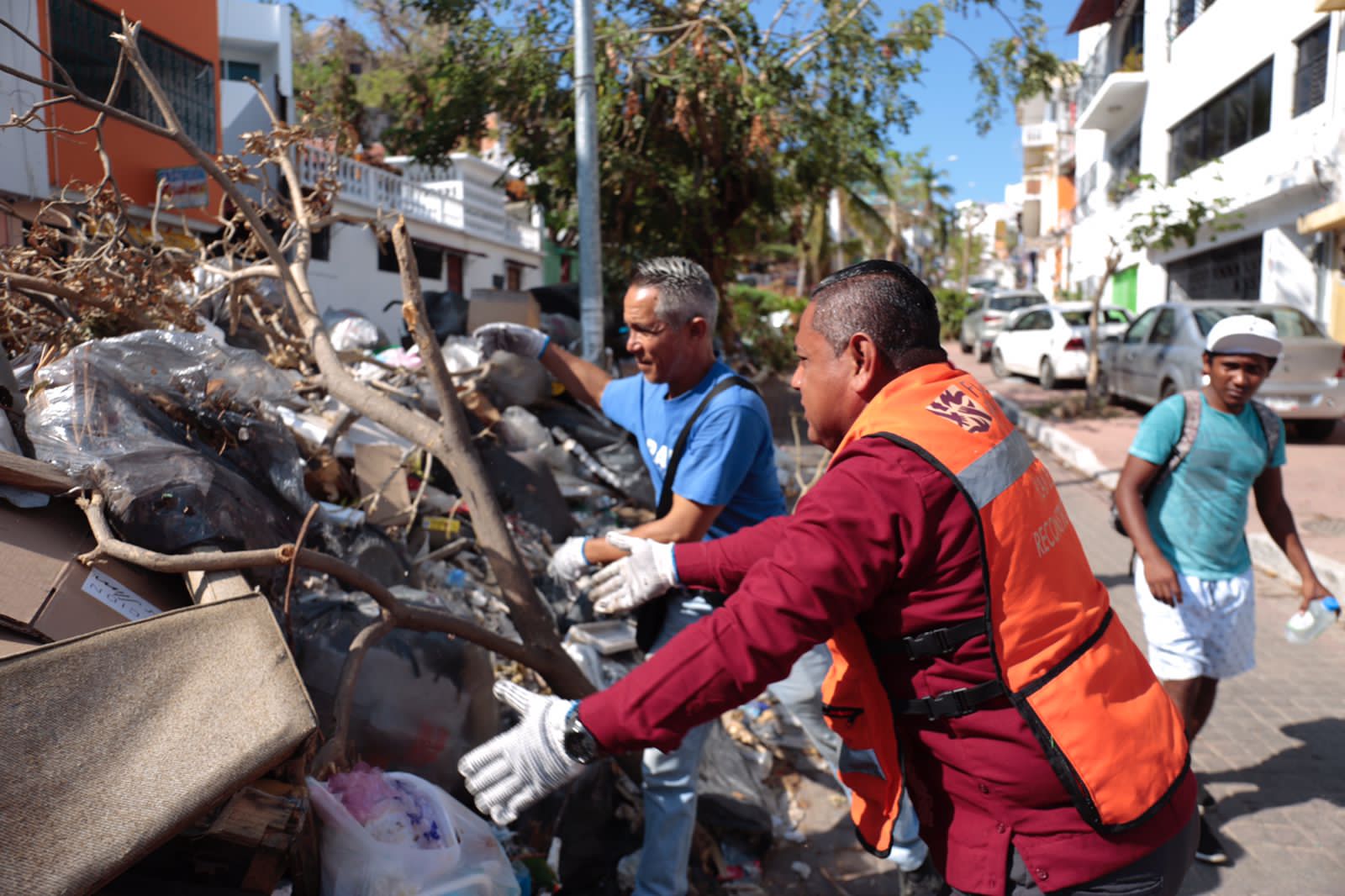 Los trabajadores de las diferentes áreas del organismo operador del agua, levantaron láminas, ramas, árboles y basura que quedaron en las calles tras el paso del huracán Otis.