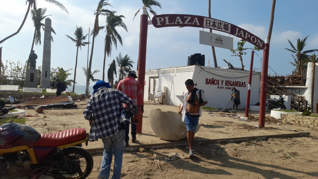 Las brigadas de limpieza realizaron trabajos de barrido fino, retiro de escombros y material de construcción de locales y viviendas que fueron afectados por el paso del huracán «Otis» en Acapulco, además afectaban la jardinería de avenidas y camellones principales.