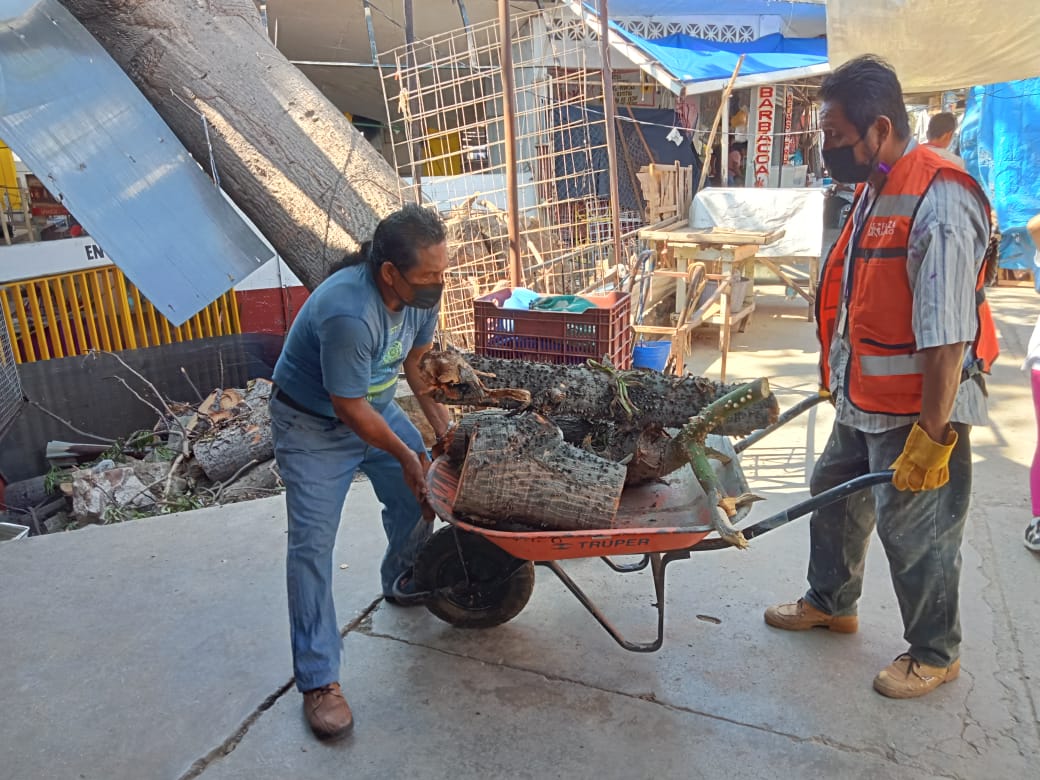 Indicó que se realiza la limpieza, el retiro de árboles, láminas, entre otros desechos en el Mercado de Artesanías, Amateros y Parazal, donde laboran más de 800 locatarios.