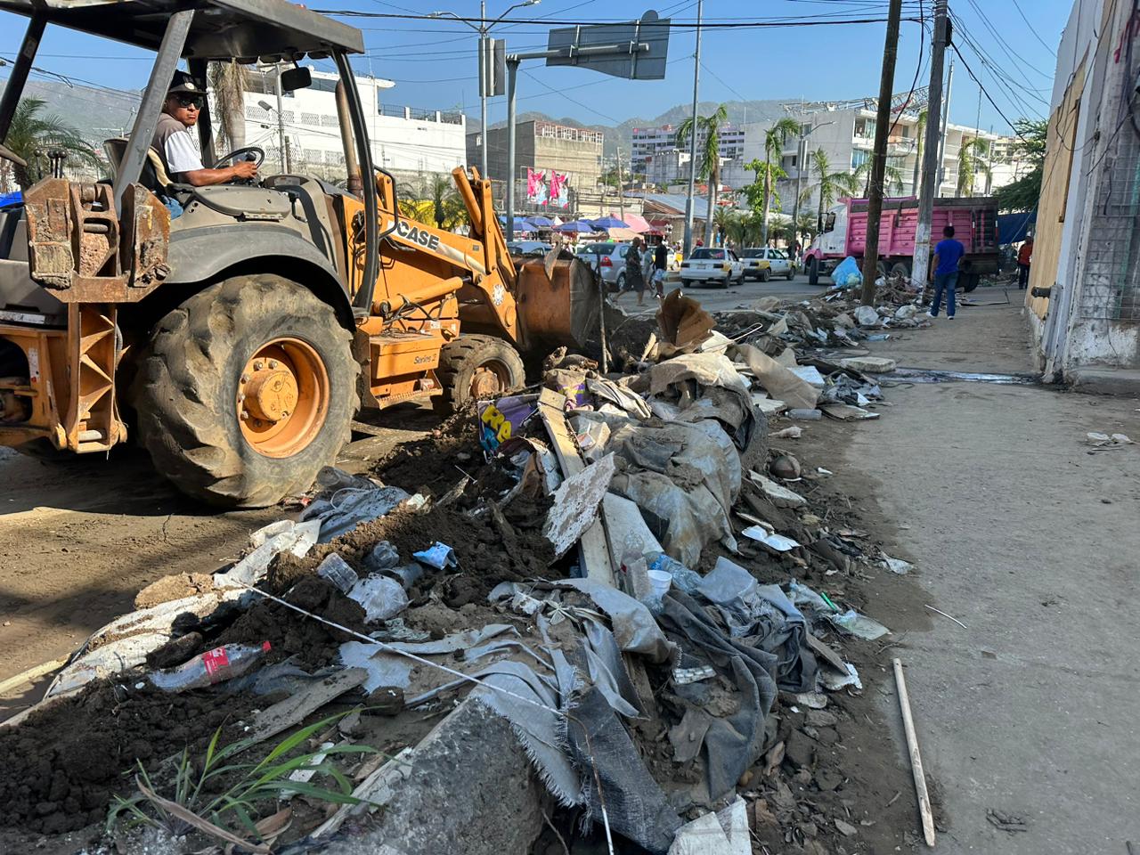 El titular de esta dependencia, Silvestre Gómez Martínez, informó que las brigadas se desplegaron también sobre la avenida Cuauhtémoc, con dos máquinas retroexcavadoras, una góndola y cinco camiones de volteo, retirando basura orgánica, inorgánica, metales y tierra; también se realizó barrido fino en el área.