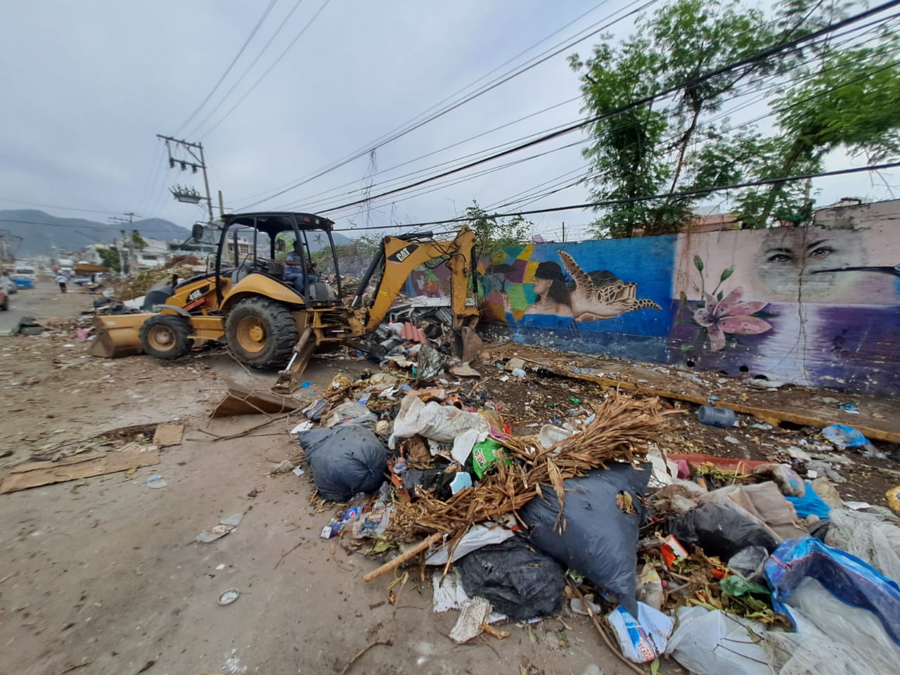 El Gobierno Municipal que preside Abelina López Rodríguez, continúa con los trabajos de limpieza y bacheo, rehabilitando las calles y avenidas afectadas por el paso del huracán «Otis».