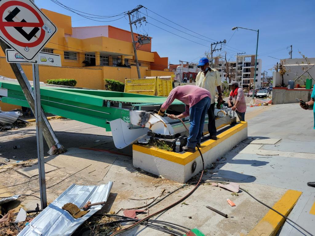 El gobierno que encabeza la Presidenta Municipal, Abelina López Rodríguez, a través de la Dirección de Conservación y Mantenimiento, realizó el retiro de espectaculares caídos y repara rejillas e infraestructuras que resultaron dañados por el huracán “Otis”.