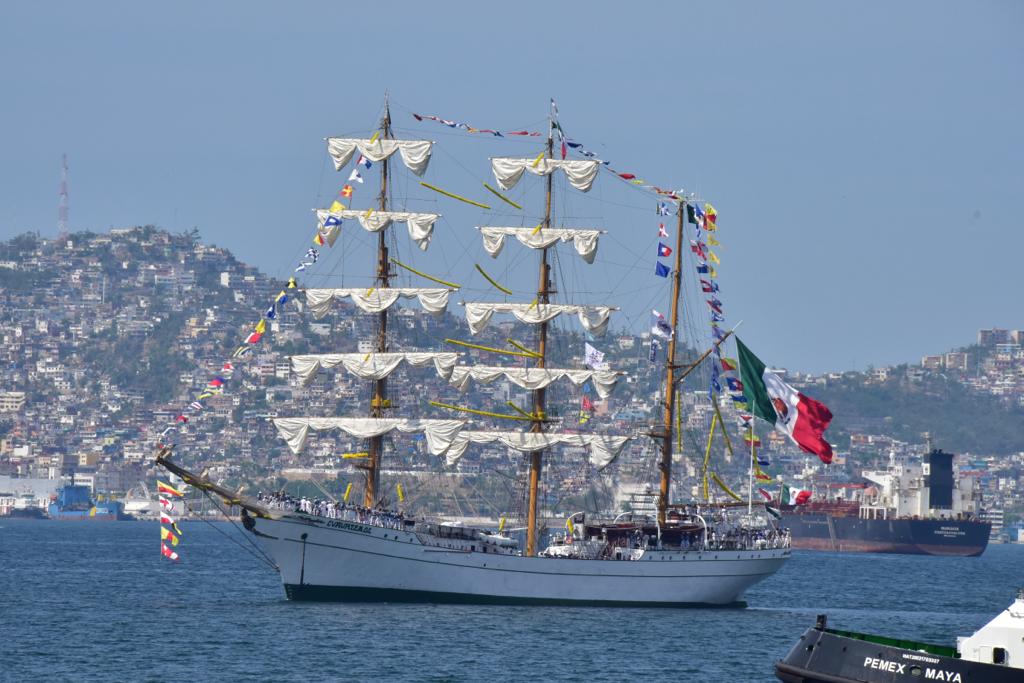 La Secretaría de Marina informó que esta mañana, el Buque Escuela Velero ARM “Cuauhtémoc” (BE-01) arribó al muelle de la Décima Segunda Región Naval con sede en Acapulco, Guerrero, al término del Crucero de Instrucción “Ibero-Bizantino 2023”, en el cual llevó el mensaje de paz y buena voluntad del pueblo mexicano.