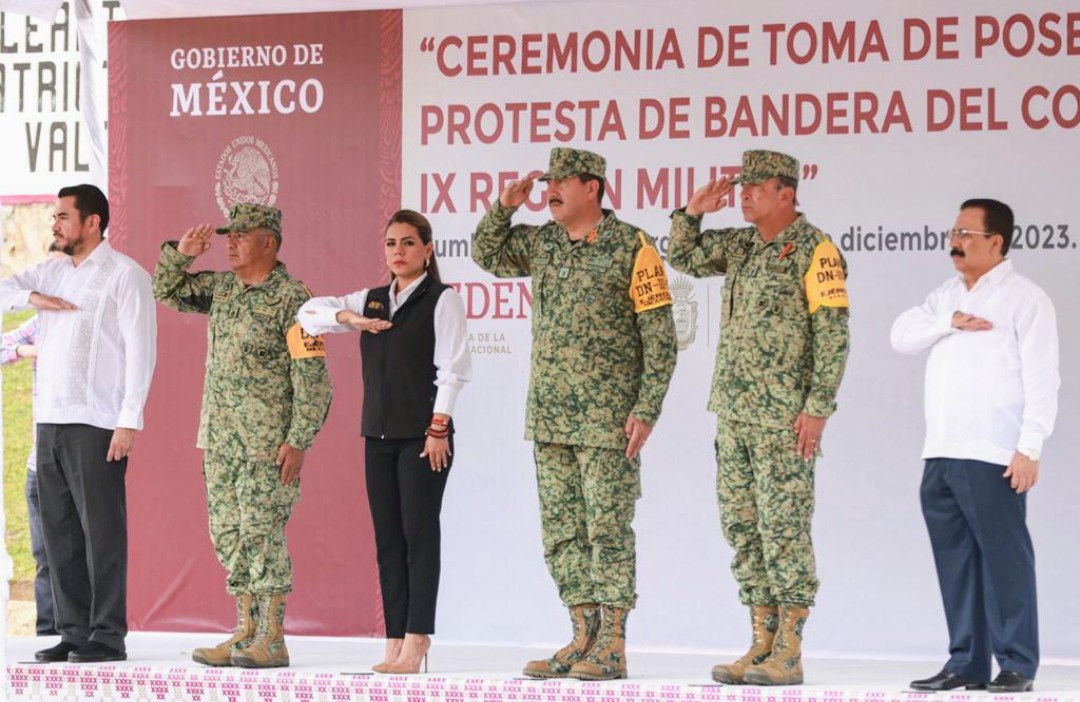 La gobernadora Evelyn Salgado Pineda asistió a la Ceremonia de Toma de Posesión del Cargo y Protesta de Bandera de Enrique Martínez López, como comandante de la Novena Región Militar, quien asume el cargo en sustitución de Ricardo Flores González.
