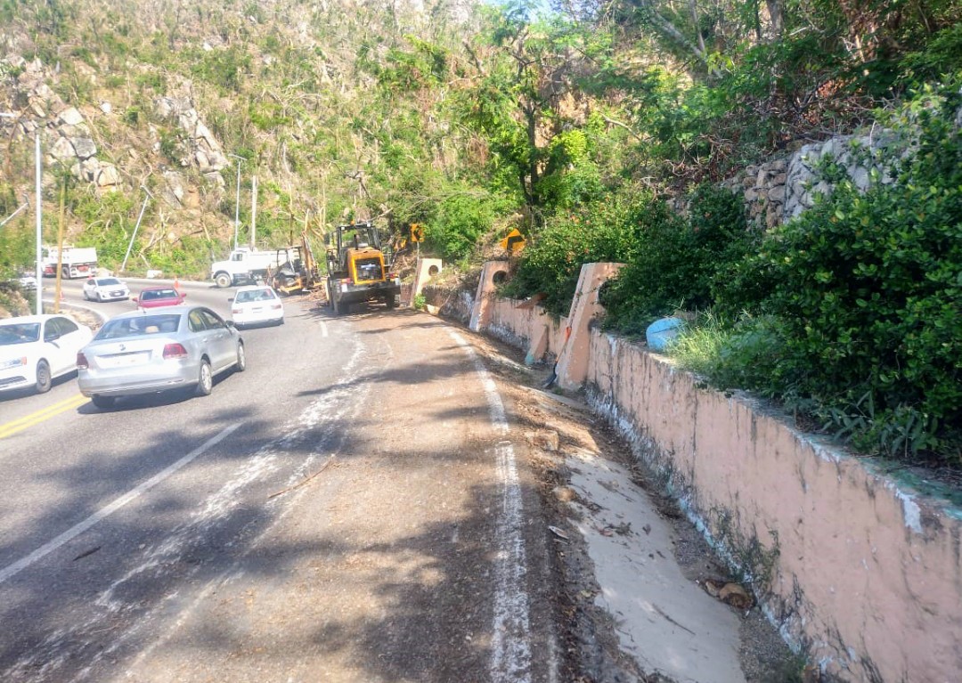 Estos trabajos son parte del reforzamiento de las acciones en esa importante arteria que conecta la Costera Miguel Alemán con la zona Diamante, y que desde un inicio fue atendida con prontitud tras el paso del huracán Otis.