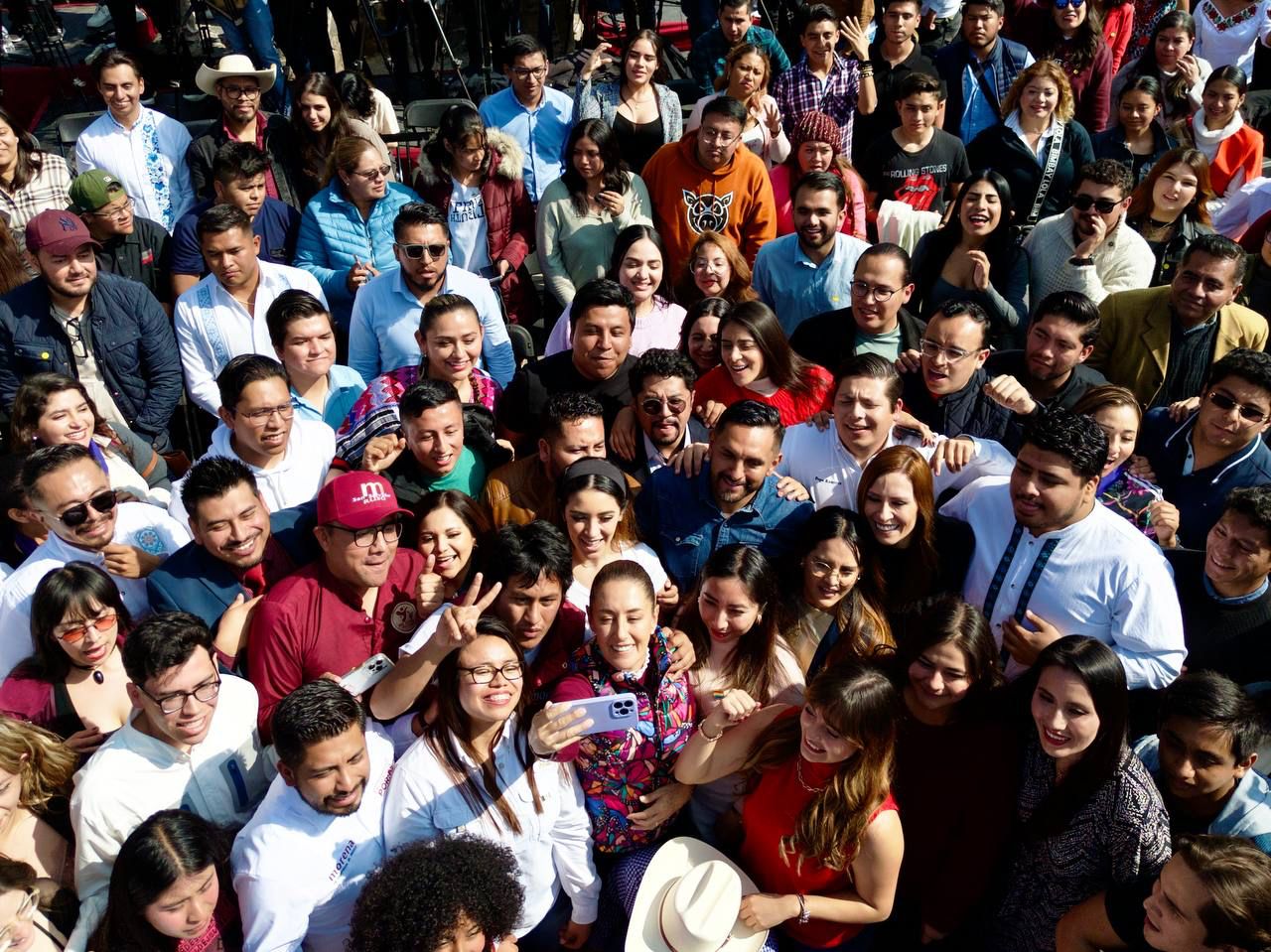 “Que esta generación asuma esta causa de hacer historia, llevando por primera vez a una mujer presidenta, una mujer que ha estado en la lucha de Andrés Manuel López Obrador. Hagan también suyo a Morena, Morena es de ustedes”, manifestó.