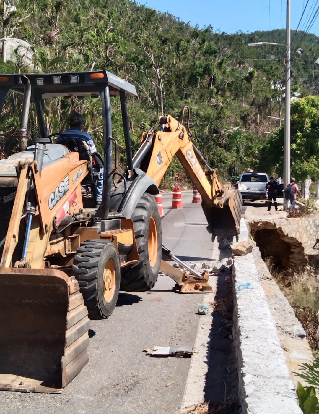La Comisión de Infraestructura Carretera y Aeroportuaria del Estado de Guerrero realiza los trabajos pertinentes, previo estudio de suelo para atender y reparar el socavón registrado a la altura del condominio «Blue» sobre la Avenida Escénica de esta ciudad y puerto de Acapulco.
