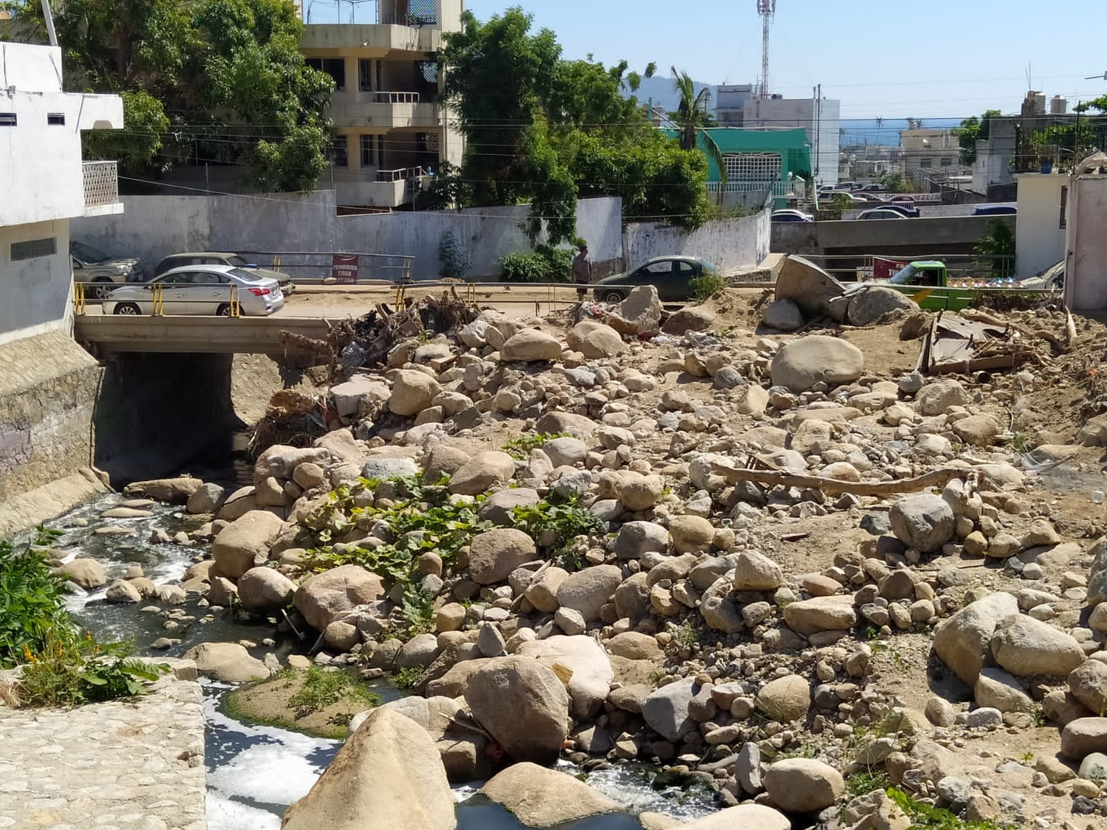 Durante la inspección también se observó el taponamiento del cauce en puentes vehiculares, entre las calles Palma Sola de la colonia Palma Sola, Sinaloa y Nuevo León de la colonia Progreso y de la avenida Cuauhtémoc hasta la avenida Costera Miguel Alemán, los cuales requieren desazolve.