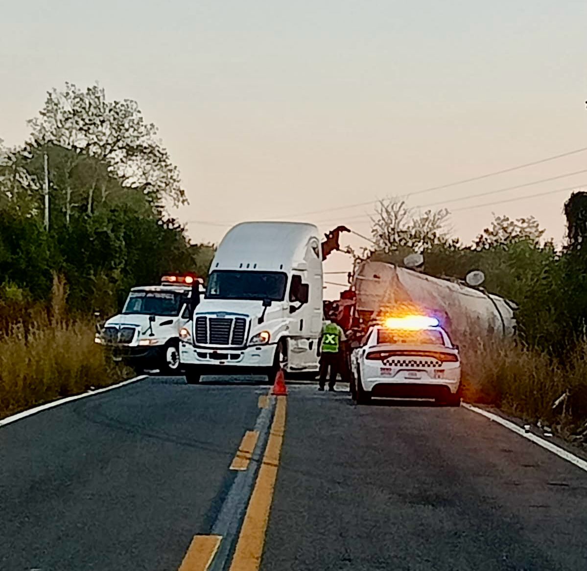 Una volcadura de una tráiler cisterna que transporta combustible volcó sobre la carretera Zihuatanejo- Acapulco.