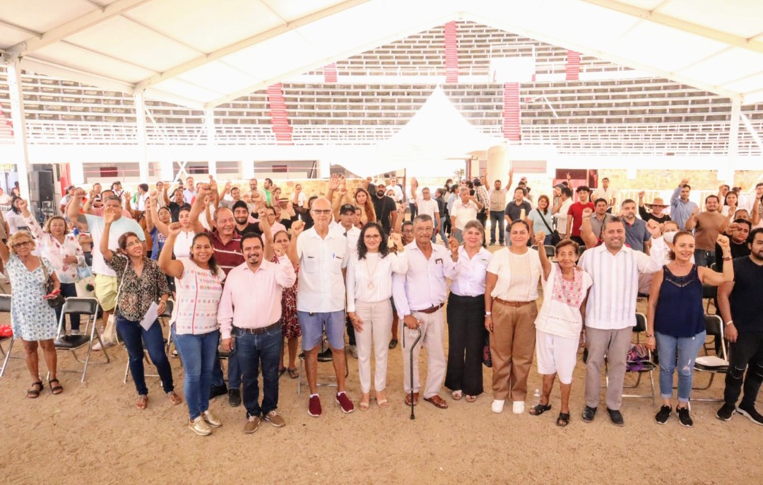 La entrega la realizaron, la secretaria del Bienestar Federal, Ariadna Montiel Reyes, la secretaria de Desarrollo y Fomento Económico, Teodora Ramírez Vega, el secretario de Turismo del Estado, Santos Ramírez Cuevas y la directora del Financiera para el Bienestar (FINABIEN), María del Rocío Mejía Flores.