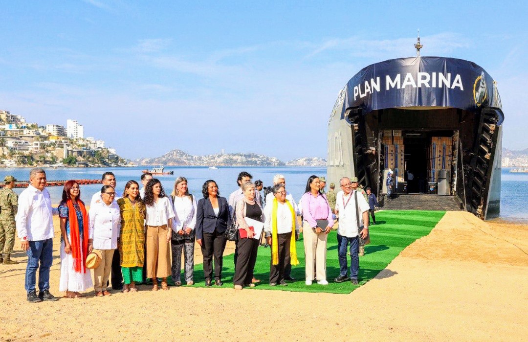 Enseguida la gobernadora y el presidente, supervisaron en el muelle de la Décima Segunda Región Naval, el desembarque de enseres a bordo del Buque Auxiliar de Apoyo Logístico ARM Isla Tiburón, los cuales son provenientes de China, y tienen como objetivo apoyar de manera directa a las familias de Acapulco y Coyuca. Se informó que, de manera conjunta, desde el 22 de enero a la fecha, se han trasladado y entregado a la Secretaría de la Defensa Nacional para su distribución un total de 23 mil 592 refrigeradores y 5 mil 904 estufas.