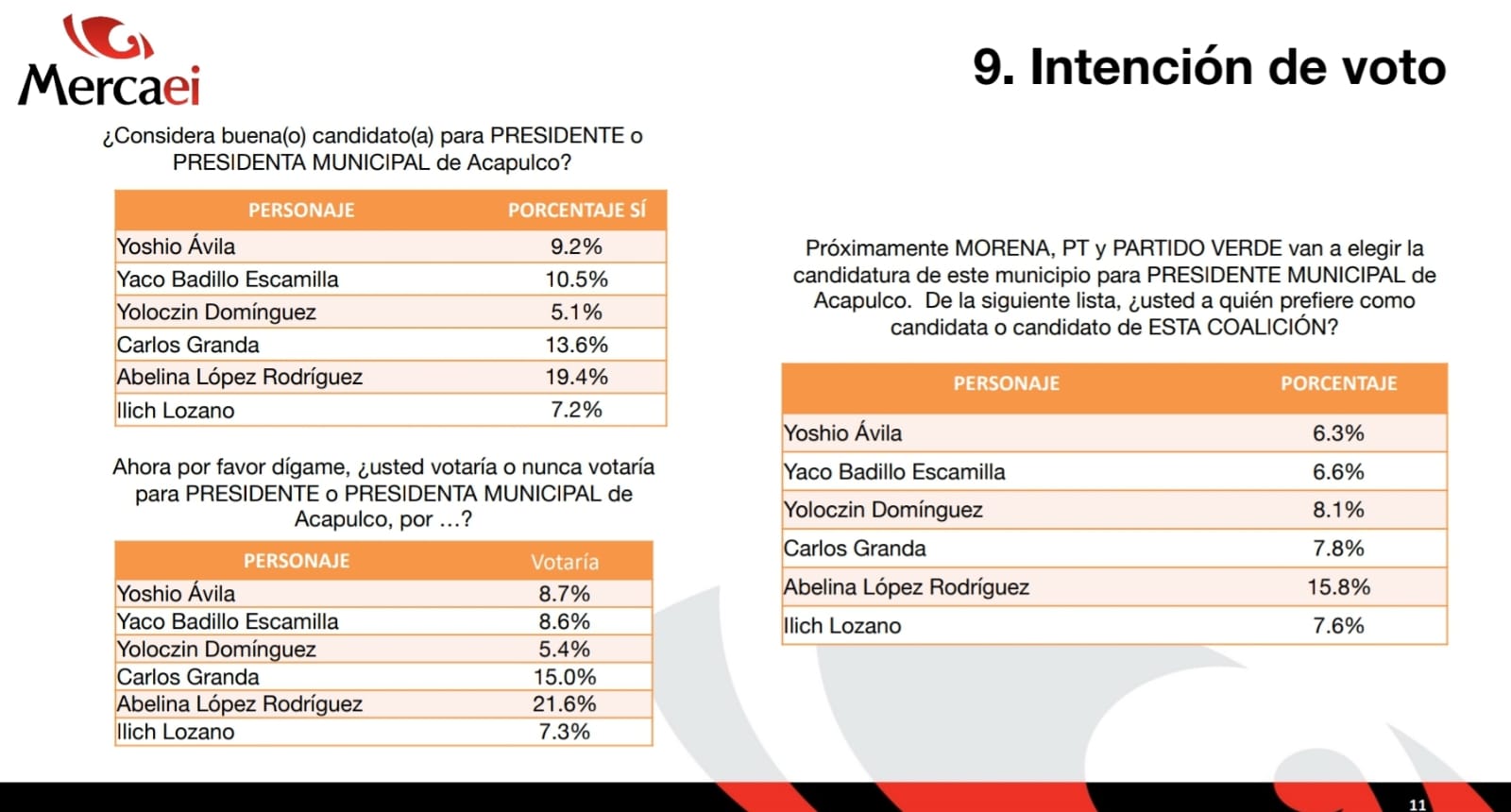 Aventaja con casi 8 puntos a los aspirantes de MORENA a la presidencia municipal de Acapulco