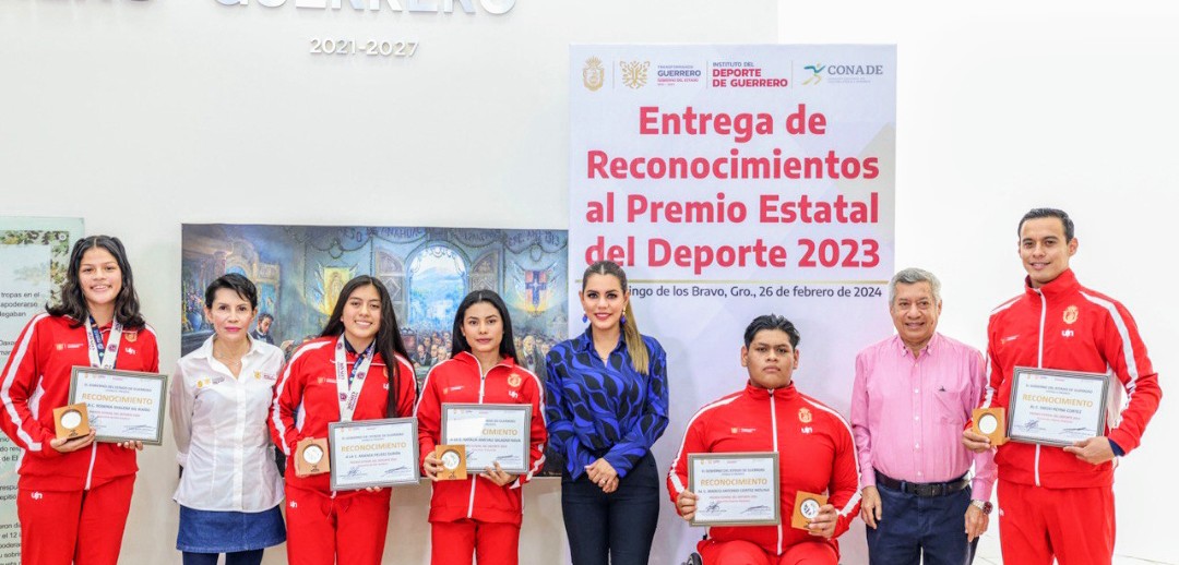 Como un reconocimiento al esfuerzo, talento y logros de los jóvenes deportistas guerrerenses, la gobernadora Evelyn Salgado Pineda entregó el Premio Estatal del Deporte 2023, a Romina Shalom Gil Riaño, Aranza Peláez Durán, Natalia Ameyali Salazar Nava, Marco Antonio Cortés Molina y Diego Reyna Cortés.