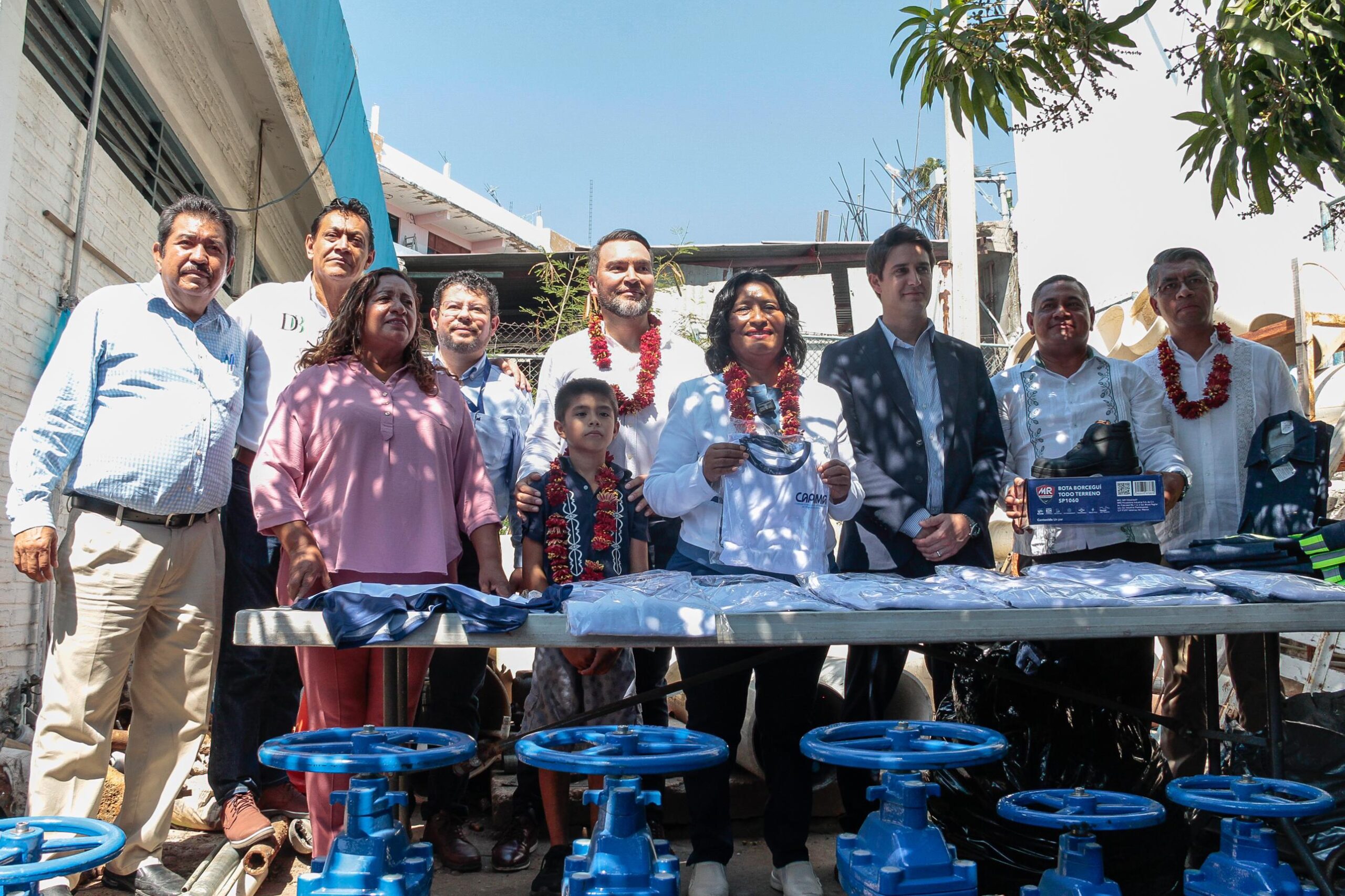 En las instalaciones de la planta de Rebombeo Tehuacán de la colonia Jardín Mangos, la Presidenta Municipal de Acapulco, junto al Country Manager de Xaylem, Omar Betancourt, el vicecónsul de Orlando, Florida, Javier de la Vega, el empresario de Red Meters, Henrry Moth, y el secretario de la sección 27 del SUSPEG, Daniel Bello Tabares, realizó la entrega oficial.