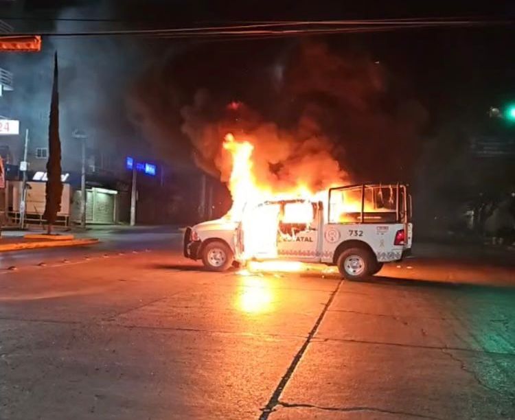 Diez minutos después más estudiantes quemaron una patrulla de la Policía Estatal sobre la Avenida Insurgentes, en el lugar conocido como Las Parotas, cerca del mercado Baltazar R. Leyva Mancilla, al norte de la capital.
