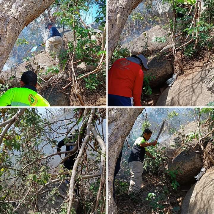 Aproximadamente a las 13:00 horas, cuando se recibió el reporte, el personal de la Coordinación General de Protección Civil y Bomberos de Acapulco, se desplazó al lugar, donde se realizaron trabajos de guardarraya de 2 a 3 metros de ancho, para evitar que el fuego se propague a las viviendas cercanas.