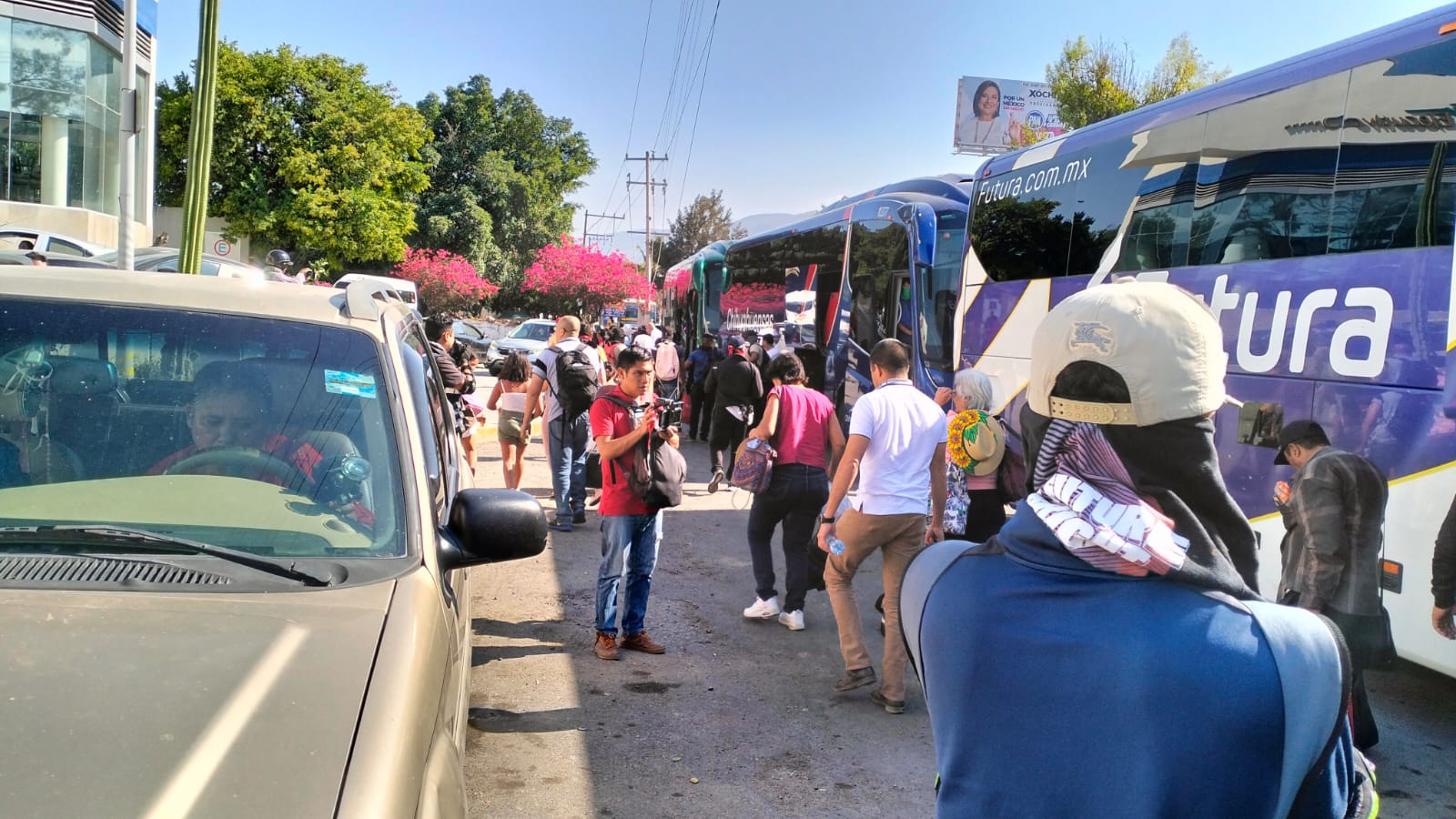 Al llegar a la Central de Autobuses Estrella Blanca ubicada en la colonia Benito Juárez, bajaron a los pasajeros para llevarse los autobuses hacia su normal.