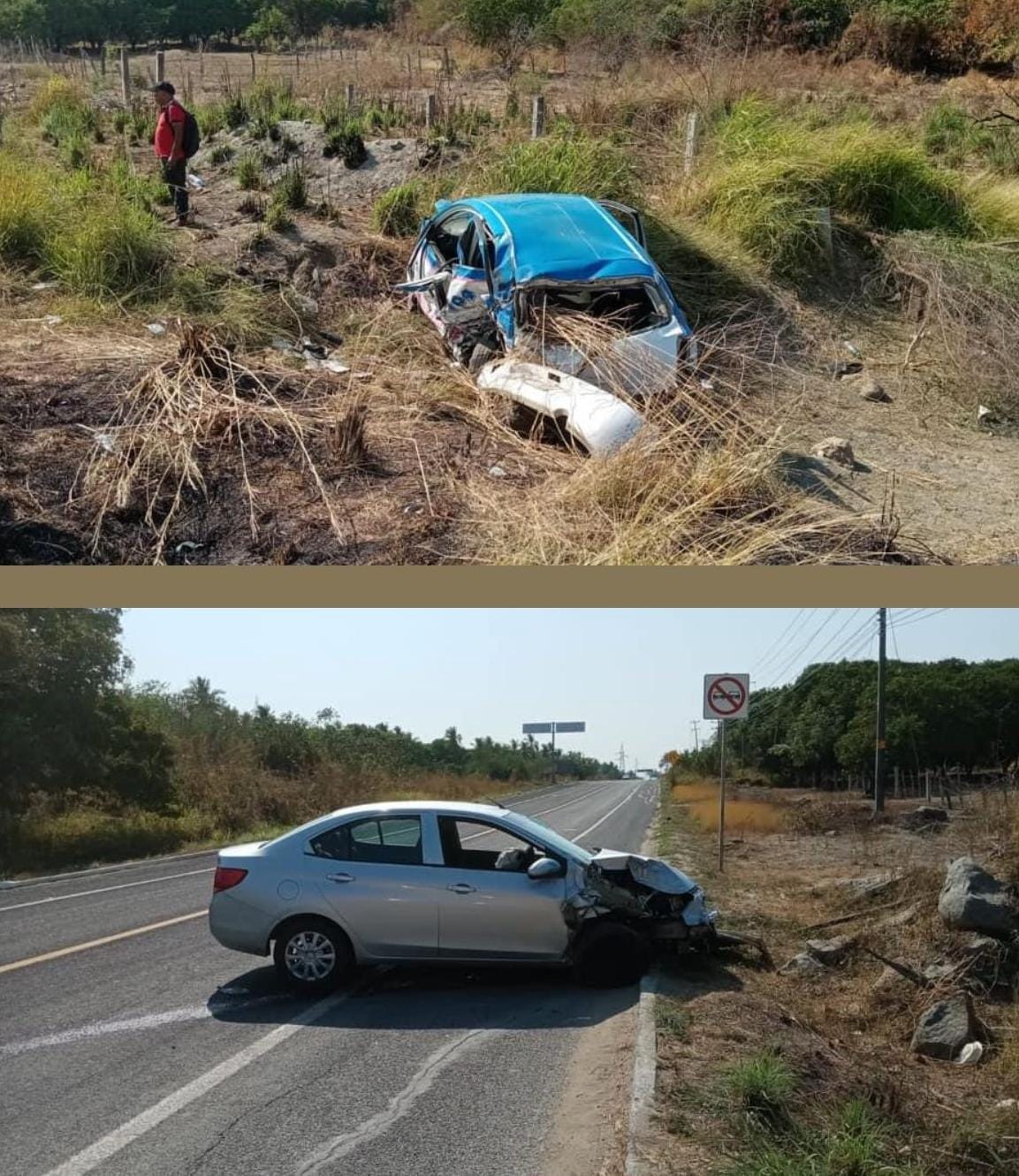 Un fuerte choque entre un Vento y un Taxi dejó saldo de 2 personas lesionadas en Tecpan de Galeana.