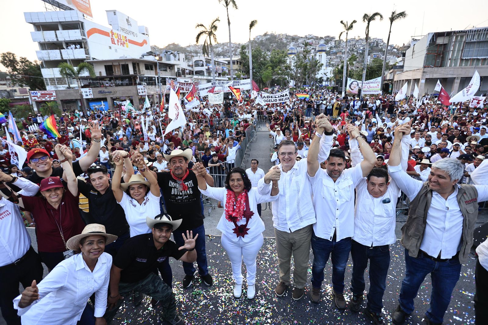 Los candidatos acompañaron a Abelina López Rodríguez al mitin en el Zócalo de la ciudad, después de la Marcha del Triunfo en Costera Miguel Alemán, que contó con la participación de miles de acapulqueños.