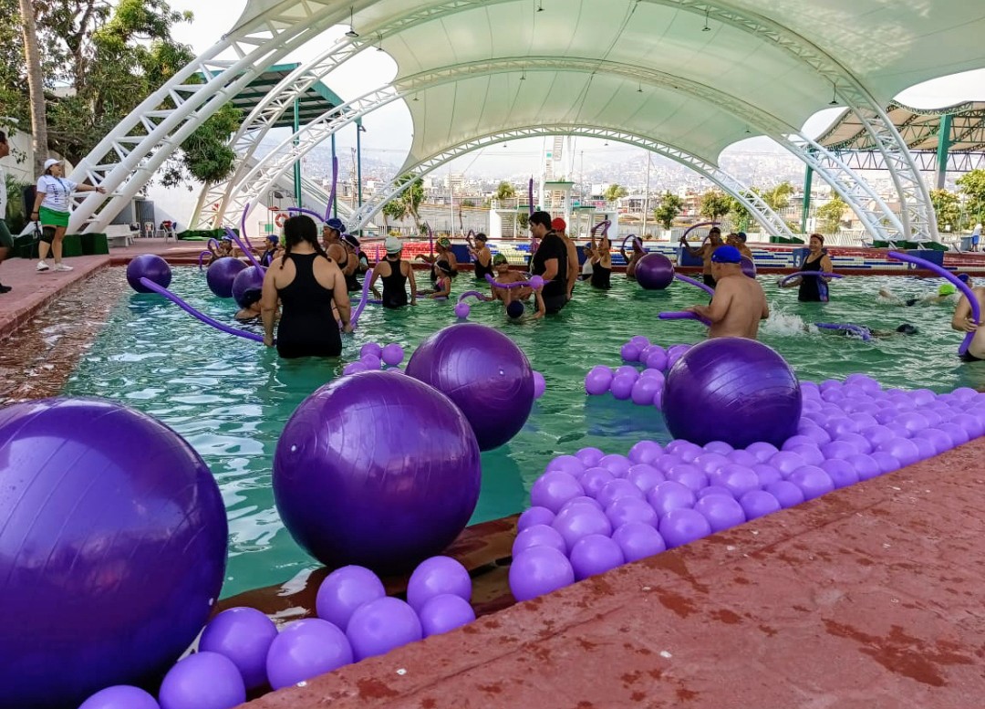 Con el objetivo de fomentar la inclusión, el compañerismo, la igualdad de género y la no violencia a través de activación física, en el Centro de Seguridad Social (CSS) en Acapulco se realizó la mega clase “AquazumbIMSS: Baila por la igualdad”.