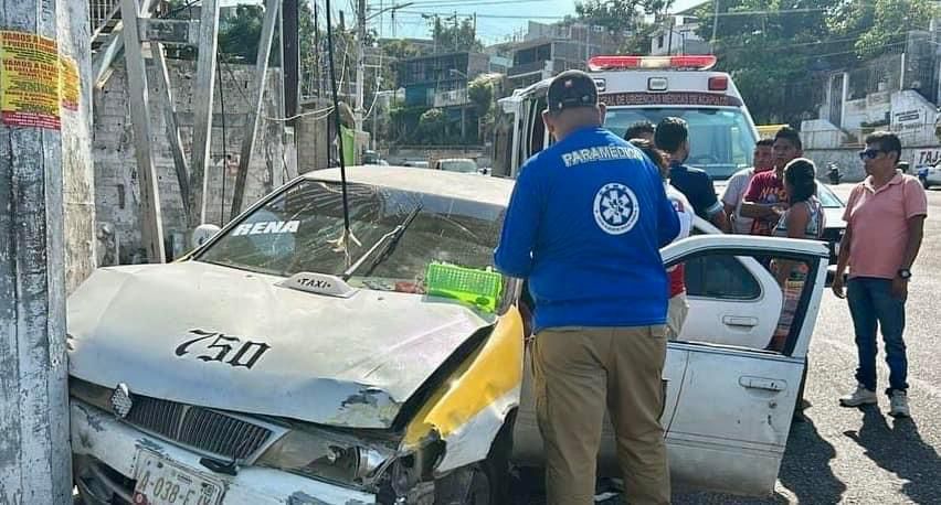 Un taxi de la ruta Renacimiento chocó contra un poste de la Comisión Federal de Electricidad, accidente que dejó como saldo tres personas lesionadas en la colonia Benito Juárez de Acapulco.