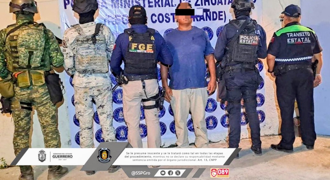 En acciones coordinadas de seguridad en el municipio de Zihuatanejo, personal de la Policía y Tránsito Estatal, con apoyo de la Secretaría de la Defensa Nacional, Guardia Nacional y la Fiscalía General de Guerrero, detuvieron a un individuo que cuenta con una orden de aprehensión por el delito de feminicidio.