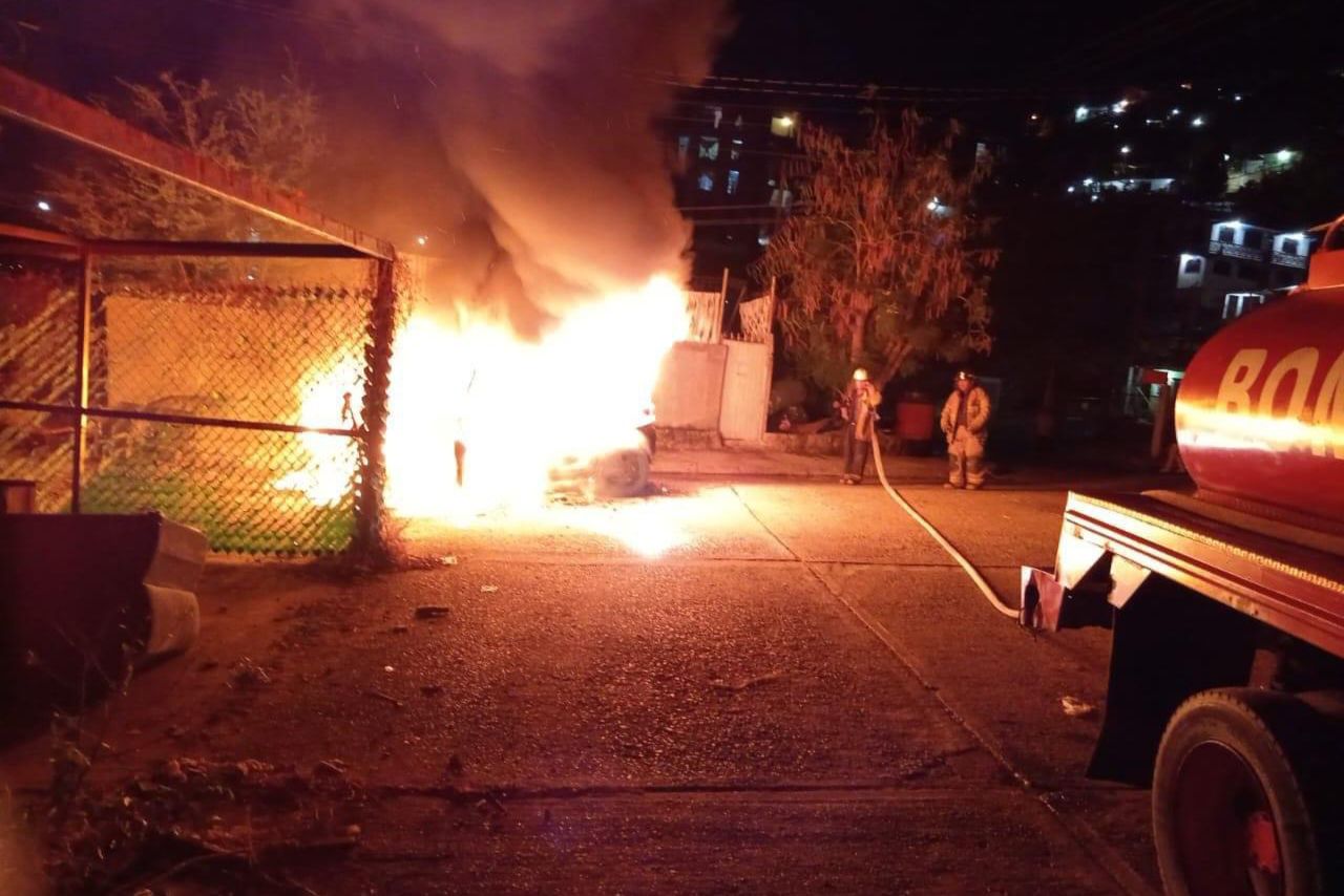 Un auto fue incendiado y baleado en la Unidad Habitacional El Coloso en el puerto de Acapulco.
