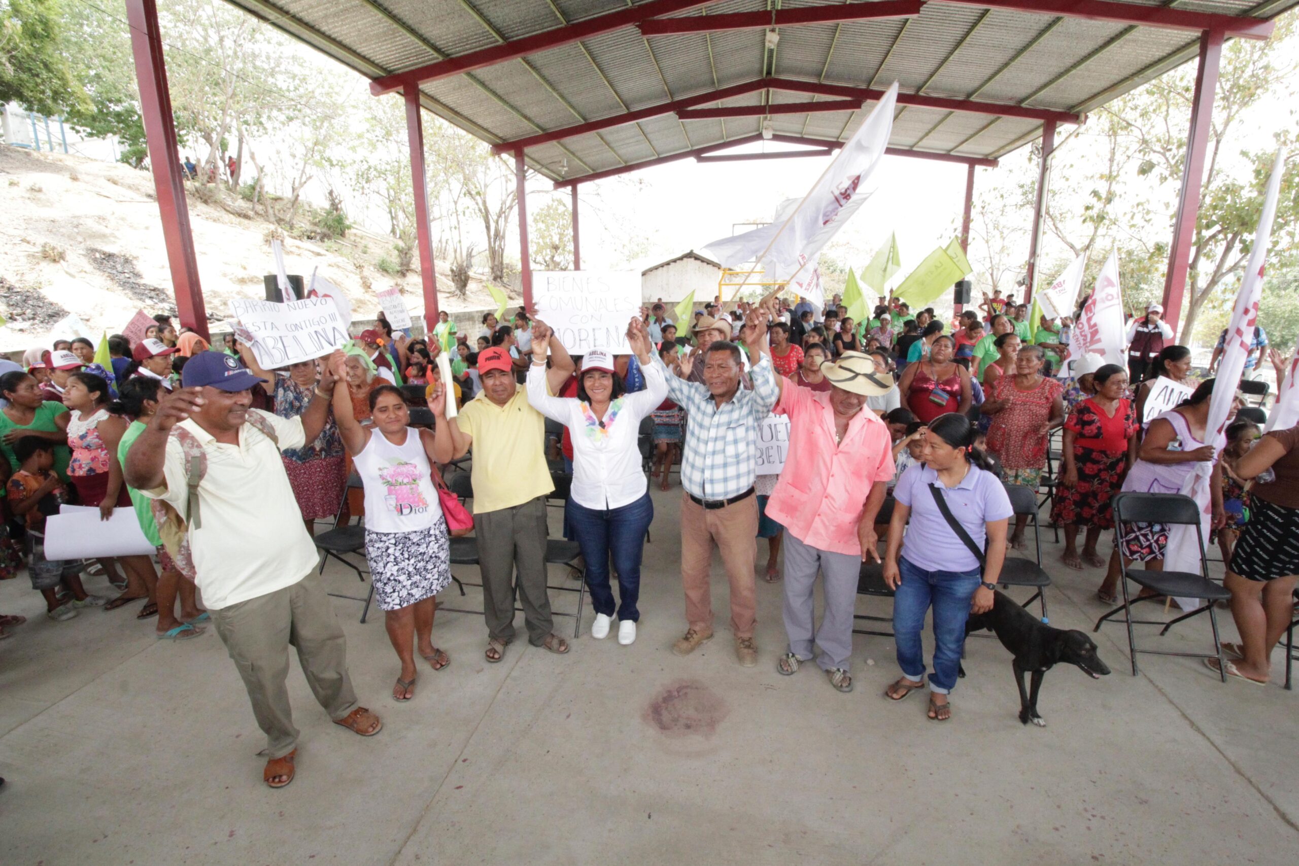 Abelina López Rodríguez, candidata de la coalición Morena-PT-PVEM, refrendó su compromiso de mejorar la conectividad de los Bienes Comunales de Cacahuatepec a través de la obra del puente “La Esperanza”.