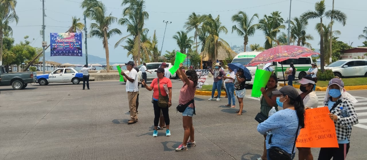 Vecinos de la colonia José Rubén Robles Catalán, protestaron desde las 10 de la mañana, hasta las 2 de la tarde, frente a las oficinas del Fideicomiso Acapulco y la costera Miguel Alemán.