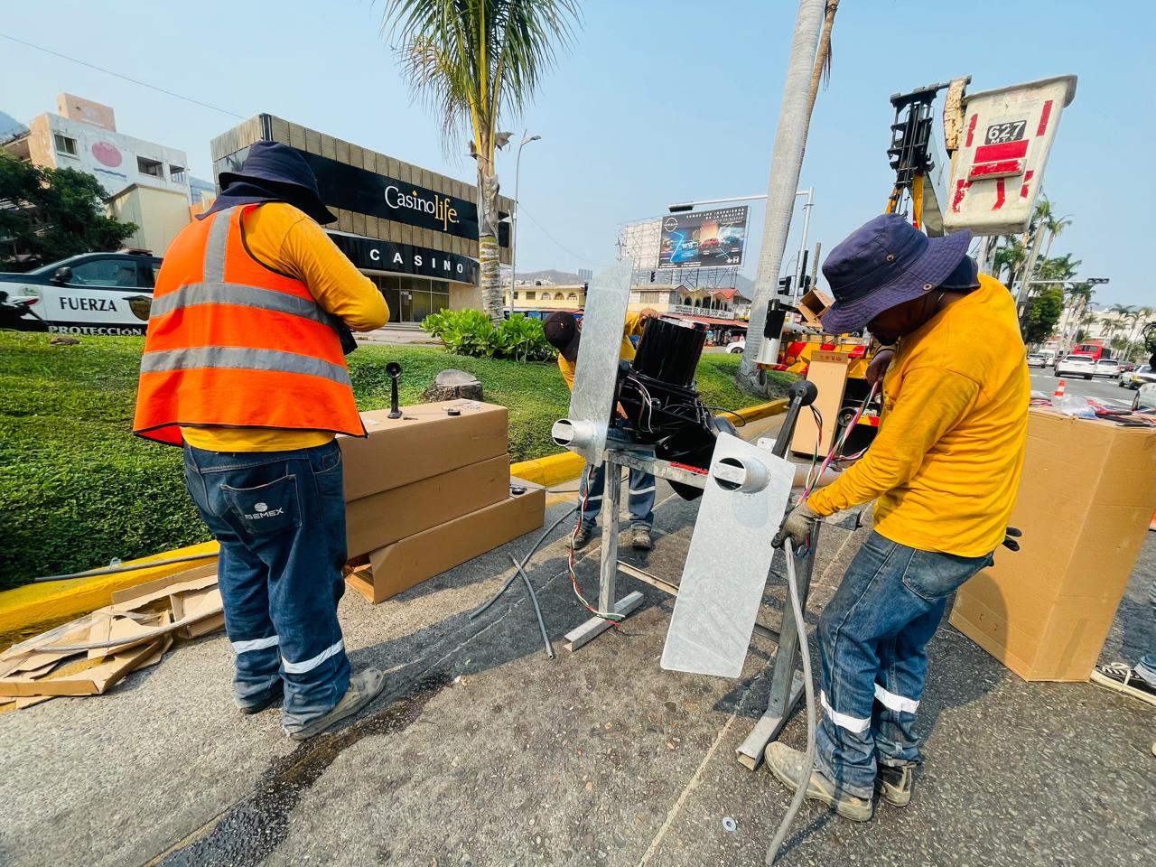 Este miércoles las brigadas de la dependencia municipal, trabajan en la instalación de estructuras metalicas semaforizadas en las intersecciones de las calles Gabriel Avilez y Lomas del Mar; se tiene previsto que para el día viernes entren en funcionamiento los semáforos de los cruceros de Vía Rapida, Wilfrido Massieu, la glorieta de la Diana y Base Naval.