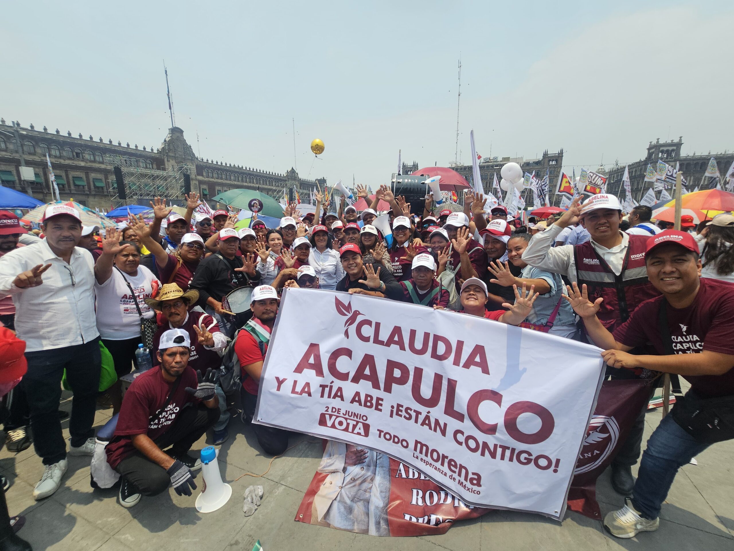 Abelina López Rodríguez, quien se perfila como ganadora de la presidencia municipal por la coalición Morena-Partido del Trabajo-Partido Verde Ecologista de México, respaldó a la próxima presidenta de la República, Claudia Sheinbaum Pardo durante su cierre de campaña en la Ciudad de México.