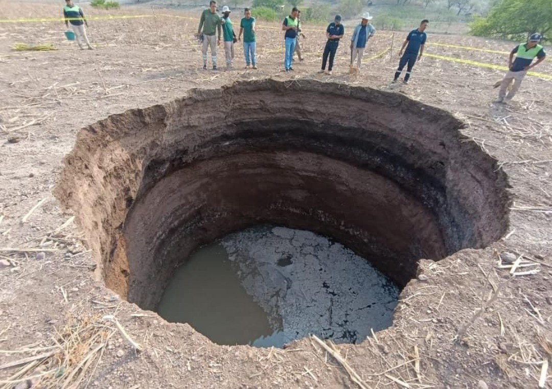 El hundimiento se presentó en un terreno de cultivo de maíz, con una profundidad de 10 metros y un diámetro de 7.5 metros