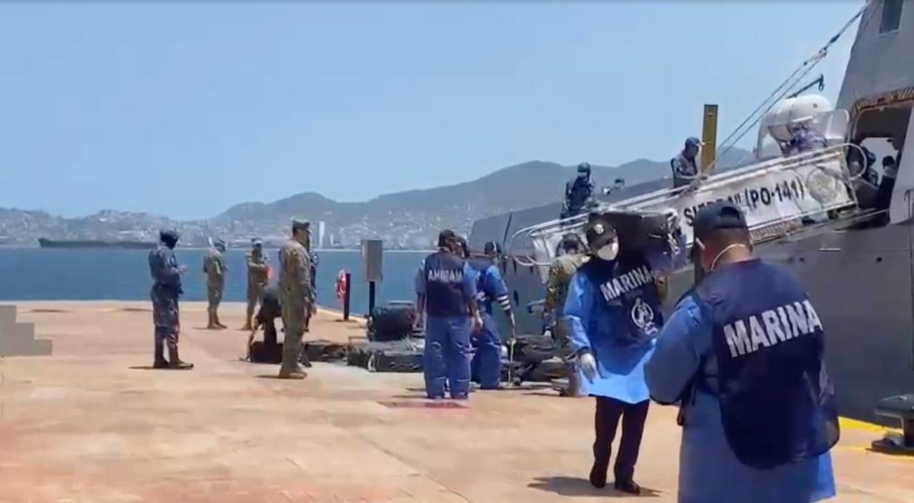 En la primera acción, durante patrullajes de vigilancia marítima a bordo de una Unidad de Superficie (buque) de la Armada de México, personal naval localizó, a más de 100 millas náuticas (185.2 kilómetros) al Suroeste del puerto de Acapulco, Guerrero, 37 bultos tipo costalillas de color negro flotando en el mar y amarrados unos con otros, conteniendo en su interior paquetes tipo ladrillo, cada uno con polvo color blanco con las características similares a la cocaína.