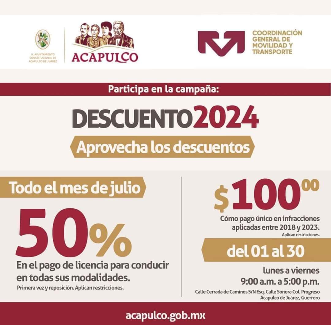 El Gobierno de Acapulco exhorta a la ciudadanía a aprovechar estos descuentos, que además de contribuir en la economía de la población, ayudan a incrementar la recaudación para la mejora de los servicios públicos en la ciudad.
