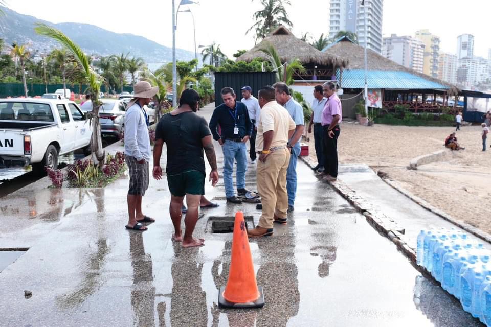 El Gobierno Municipal de Acapulco a través de la Comisión de Agua Potable y Alcantarillado del Municipio de Acapulco (CAPAMA) da puntual atención y controla una fuga de agua potable sobre la avenida Costera Miguel Alemán a un costado del Asta Bandera.