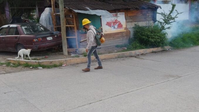 La Secretaría de Salud Guerrero (SSG) informó que el combate al mosco transmisor del dengue Aedes Aegypti continúa de manera permanente con acciones de control larvario y nebulización en zonas de mayor incidencia, con el objetivo de reducir el incremento de casos de este padecimiento, así como de zika y chikungunya.