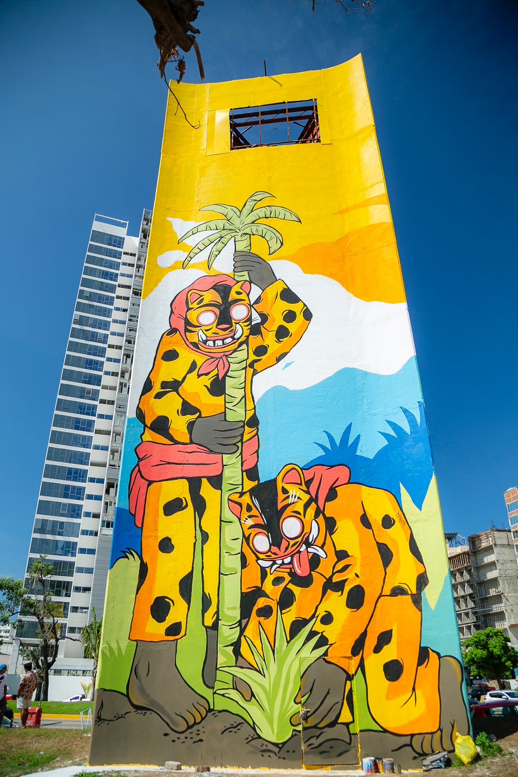 El muralista acapulqueño, diseñador e ilustrador, Miguel Castillo, señaló que, en el tótem que se ubica en el Centro de Convenciones de Acapulco, se trabaja en la creación de tres murales que combinan la cultura del estado de Guerrero, con las costumbres y estilos de vida de la gente de Acapulco.