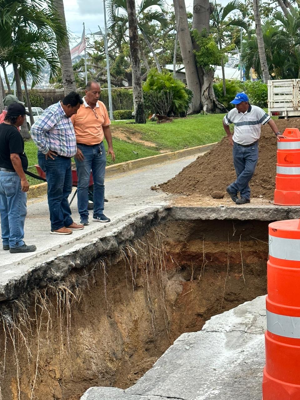 De manera inmediata, acudió al lugar personal de la Comisión de Agua Potable y Alcantarillado del Municipio de Acapulco (CAPAMA), Coordinación General de Presidencia y la Dirección de Maquinaria Pesada, para tapar el tubo y posteriormente hacer la compactación.