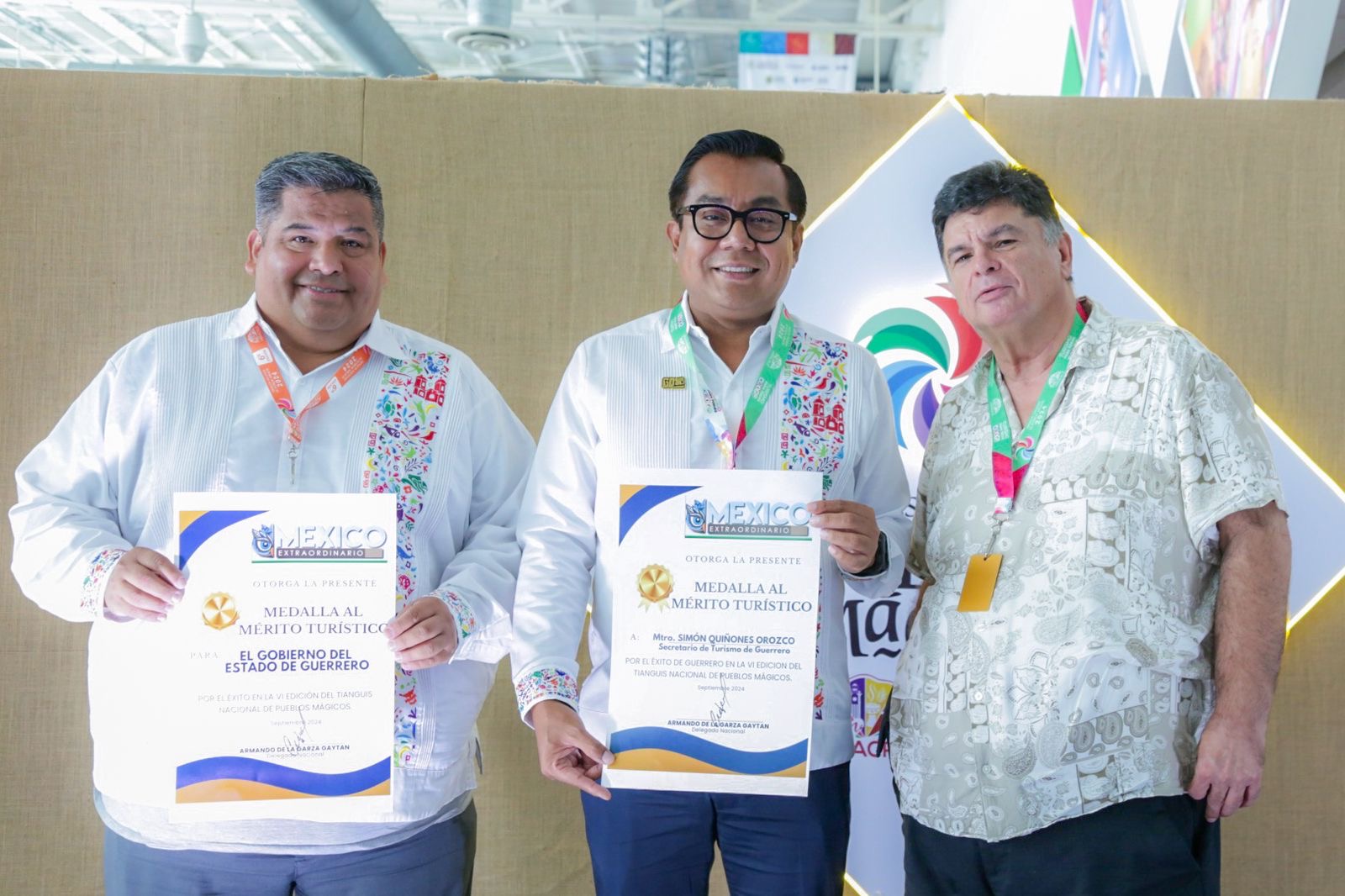Como resultado de las acciones de promoción con las que la gobernadora Evelyn Salgado Pineda impulsa los destinos turísticos guerrerenses, el titular de la Secretaría de Turismo estatal, Simón Quiñones Orozco, recibió la “Medalla al Mérito Turístico”, por la destacada participación del gobierno de Guerrero en la Sexta Edición del Tianguis Nacional de Pueblos Mágicos, que otorga México Extraordinario Digital, medio de comunicación líder en turismo en el país.