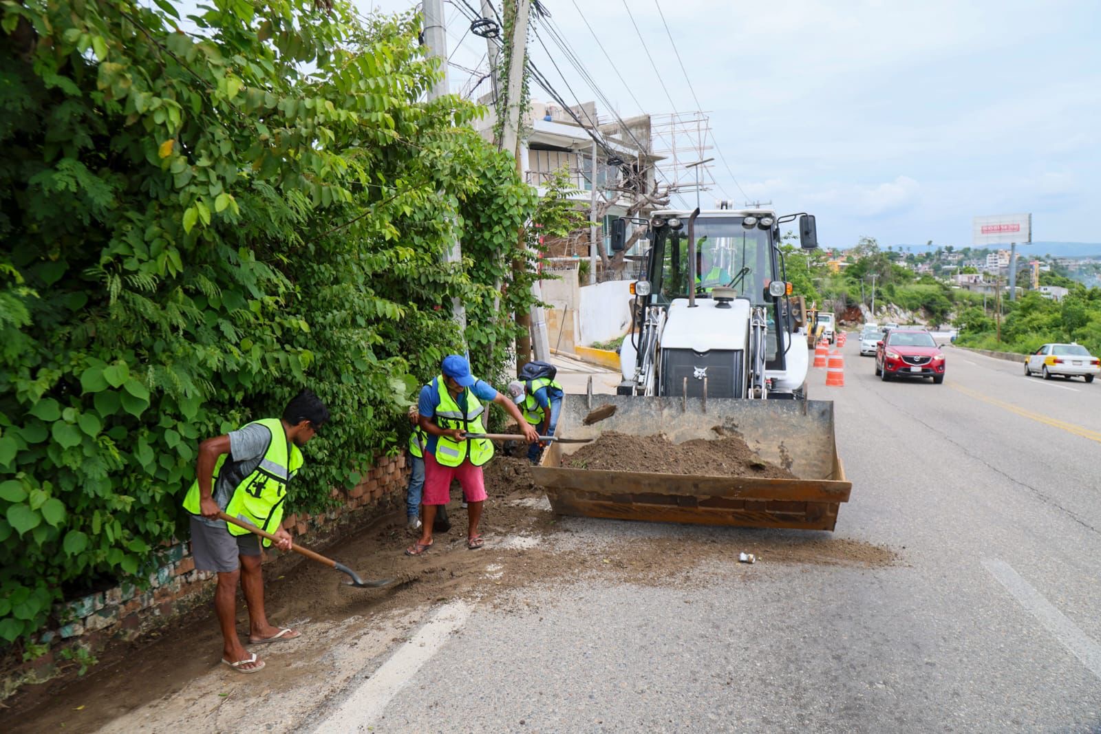 Como parte de estos trabajos, se lleva a cabo la limpieza de cunetas, para lograr un adecuado desfogue de la corriente pluvial; además se está realizando la sustitución de tapas de registros de agua potable, así como de la Comisión Federal de Electricidad (CFE) y de las empresas de telecomunicaciones que tienen su cableado subterráneo en esa zona. También se realiza el retiro de rocas, tierra y restos de árboles, que se encuentran cercanos o sobre la carpeta asfáltica.