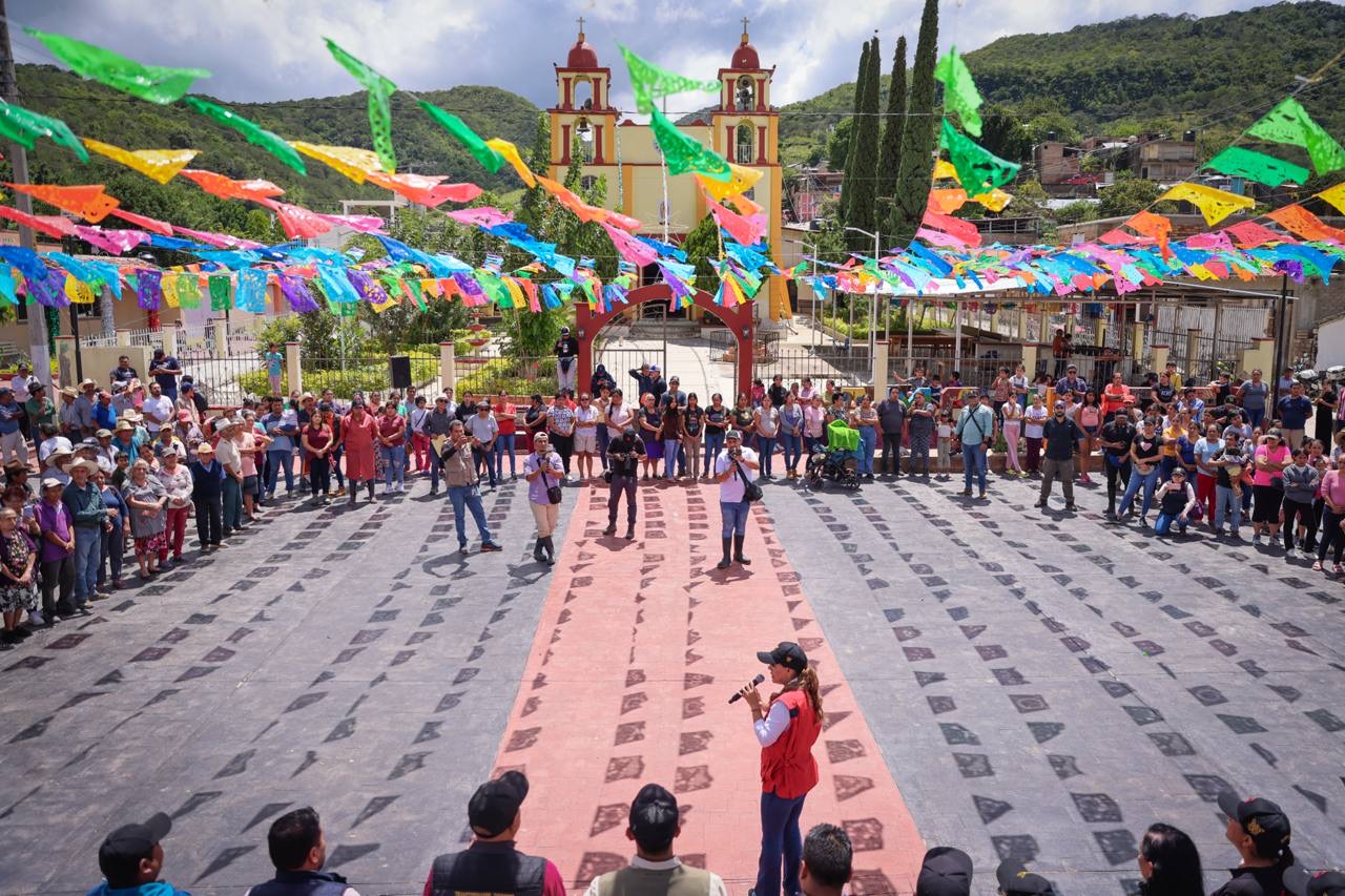 Desde Amojileca, la mandataria estatal expresó su compromiso con los habitantes de la región centro, Montaña y La Sierra, por lo que refrendó su compromiso de trabajar sin descanso en la reconstrucción de Guerrero.