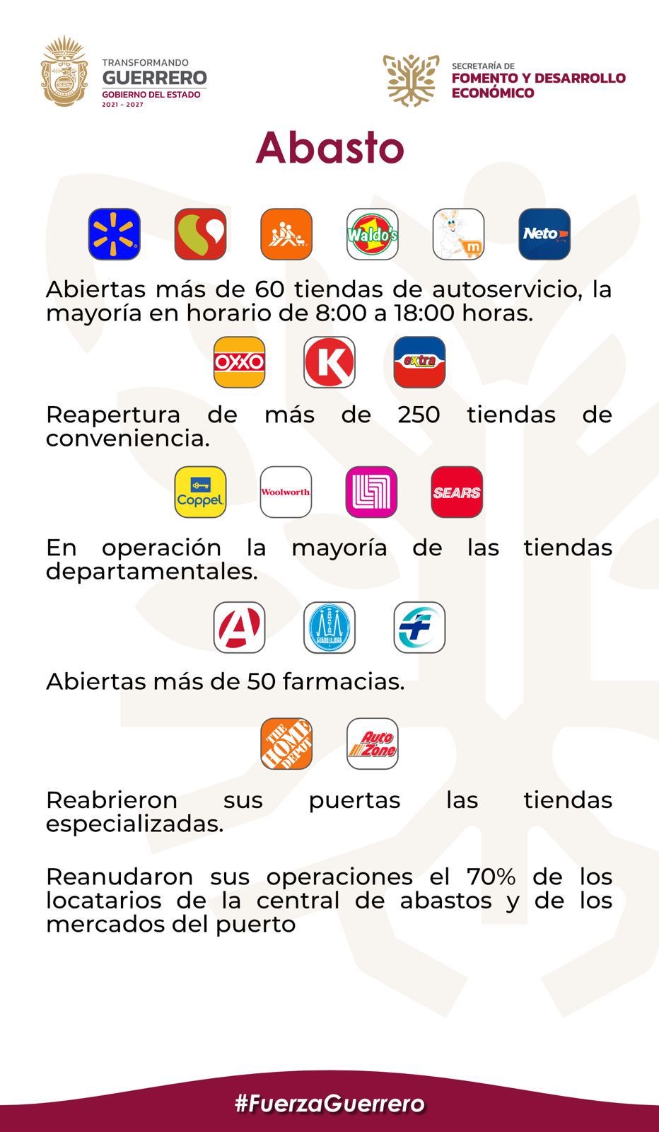 El Gobierno de Guerrero que encabeza Evelyn Salgado Pineda, a través de la Secretaría de Fomento y Desarrollo Económico (SEFODECO), mantiene comunicación y coordinación con directivos de las cadenas comerciales para asegurar el abasto de productos de primera necesidad y medicamentos, tras los estragos causados por el huracán y la tormenta tropical “John” en Acapulco y en Guerrero.