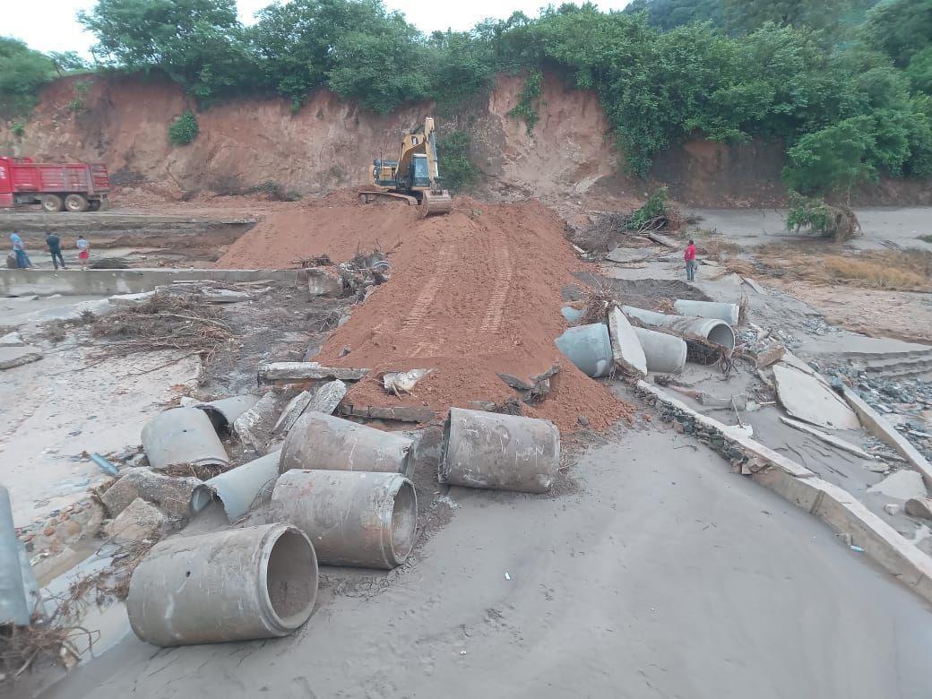 En el lugar ya se encuentra el equipo humano con maquinaria pesada, realizando trabajos de relleno para dar acceso, trabajando sin descanso para que pronto se reactive esta vía de comunicación que conecta con la cabecera municipal.