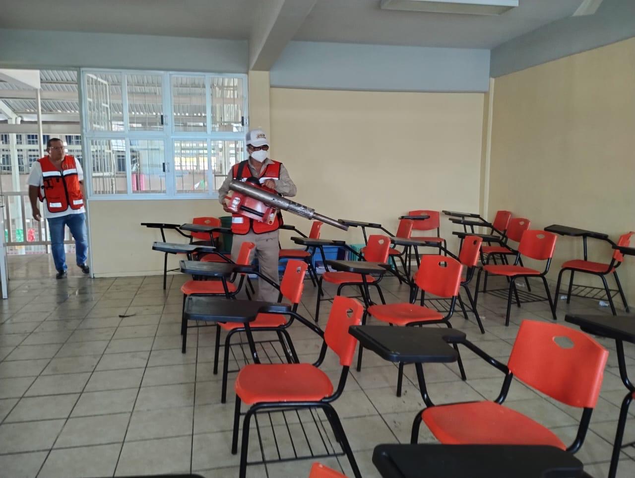 El director General de Salud Municipal, Aniceto Leguizamo Dimas explicó que ante el regreso a clases presenciales después de la suspensión temporal por el huracán “John”, el personal del área de Vectores ha fumigado más de 30 planteles educativos, principalmente en zona Diamante, así como las colonias Ciudad Renacimiento, Emiliano Zapata y San Agustín.