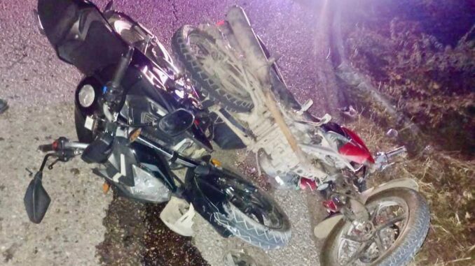 El choque frontal se dio ayer cerca de las 9 y media de la noche cuando uno de los motociclistas invadió el carril contrario entre El Mirador y la población de Ahuatepec Pueblo, municipio de Tlapa.