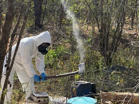 En el municipio de Culiacán, en una acción coordinada entre la Fiscalía General de la República (FGR) y la Semar, se localizó un laboratorio clandestino, asegurando 115 litros de precursores químicos mezclados, 175 kilogramos de manitrol, un condensador, un destilador y material diverso, en inmediaciones del poblado Espinal.