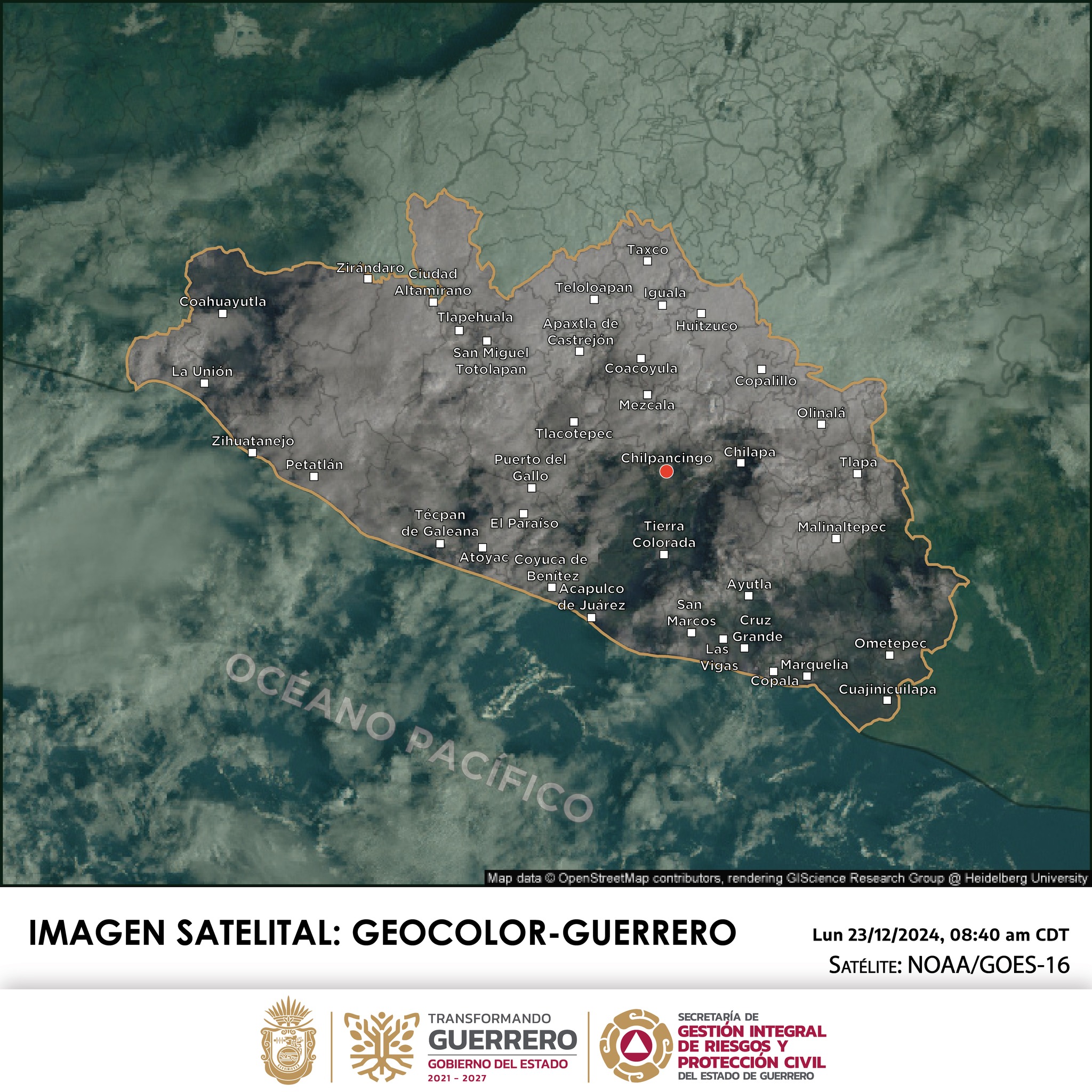 PRONÓSTICO DE PRECIPITACIÓN EN GUERRERO, PARA EL 23 DE DICIEMBRE DE 2024: